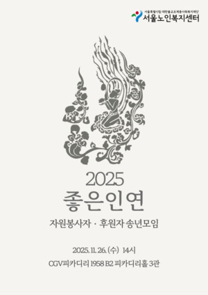 【뉴스퀘스트=최석영 기자】 서울노인복지센터는 지난 한 해 동안 나눔 활동에 참여한 자원봉사자와 후원자에게 감사의 마음을 전하기 위해 26일 CGV피카디리1958 피카디리홀에서 송년모임 ‘좋은인연’을 개최한다고 밝혔다. 센터는 올해 행사 키워드를 ‘감사·온기·장갑’으로 정하고, 따뜻한 온기를 보태준 ‘장갑 같은’ 봉사자와 후원자를 위한 다채로운 프로그램을 마련했다.행사는 1부와 2부로 나눠 진행된다. 1부에서는 2025년 센터의 주요 사업성과를 공유하고 자원봉사자·후원자가 전하는 감사 영상이 상영된다. 이어 축사와 관장 지웅 스님의