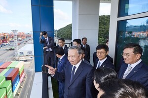 【뉴스퀘스트=김동호 기자】동원그룹은 13일 베트남 권력 서열 1위인 또 럼(Tô Lâm) 공산당 서기장이 부산 신항의 동원글로벌터미널부산(DGT)을 방문해 김남정 동원그룹 회장과 환담했다고 밝혔다.럼 서기장은 지난해 8월 베트남 공산당 중앙위원회 만장일치로 추대된 국가 최고 지도자로, 이번 방한은 한국·베트남 간 우호 증진과 경제 협력 강화를 위한 일정의 일환이다.럼 서기장과 방문단은 국내 최초 완전 자동화 스마트항만인 DGT를 시찰하며 원천 기술력과 운영 노하우를 벤치마킹했다.베트남 정부는 컨테이너 항만 산업을 국가 경제 성장의