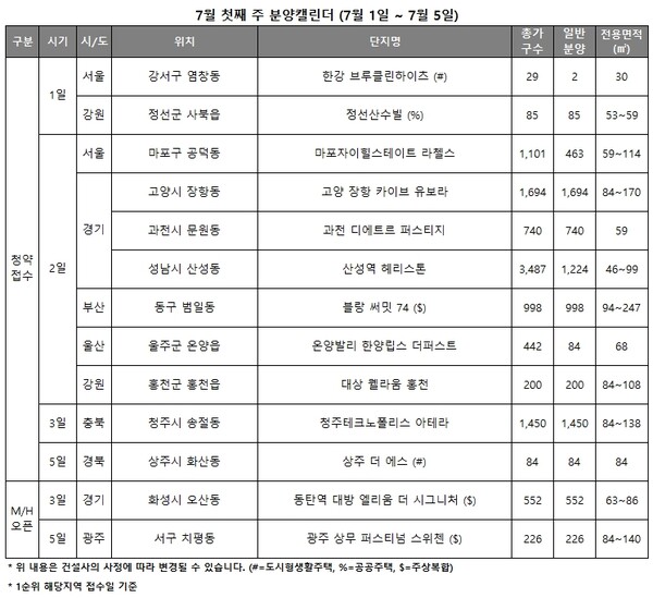 - [분양 캘린더] 7월 둘째 주 전국 16곳 4578가구 분양