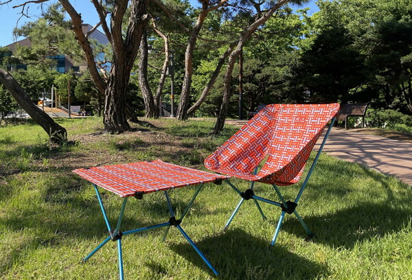 헬리녹스 대표 제품인 ‘체어원’의 편안하면서도 컴팩트한 디자인을 바탕으로 캠핑의자와 테이블에 힐스테이트 젠지 스타일 고유의 색채와 디자인이 돋보이도록 제작된 것이 특징이다.