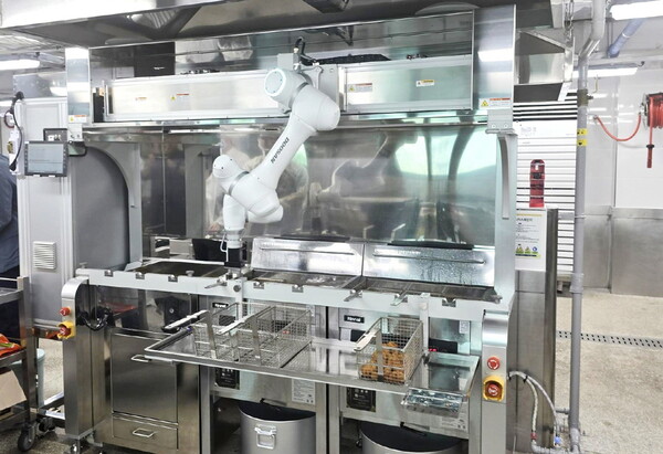 대구광역시교육청은 학교 조리종사자의 근무환경 개선과 노동강도 경감을 위해 단체급식 튀김솔루션 도입을 추진했고, 두산로보틱스의 식음료(F&B) 부문 협동로봇 파트너사인 977 로보틱스가 해당 솔루션을 기증했다.