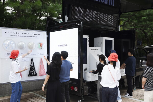효성티앤씨는 이날 친환경 스타트업 브랜드 플리츠마마와 협업해 에코 트럭을 선보였다.