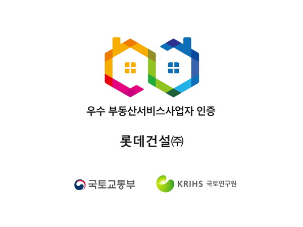【뉴스퀘스트=권일구 기자 】 롯데건설은 국토교통부장관이 인증하는 ‘우수 부동산서비스사업자 인증’ 심사에서 4회 연속 인증을 취득했다고 2일 밝혔다.