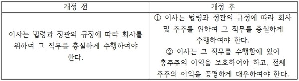 개정 상법은 ‘① 사외이사의 명칭을 독립이사로 변경하고 선임비율 상향 ② 감사위원회위원 선임․해임시 의결권 3% 제한 ③ 전자주주총회 제도 도입’ 규정 등을 담고 있지만, 무엇보다 '이사의 충실의무에 관한 규정'이 눈에 띤다.