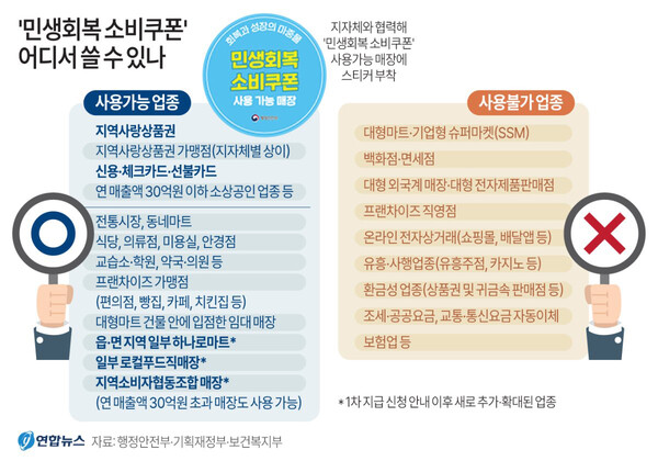 군 장병도 이번 2차부터는 복무지 인근 상권에서 사용 가능하며, 연 매출 30억 원 초과 지역 생활협동조합 매장도 사용처에 포함된다.
